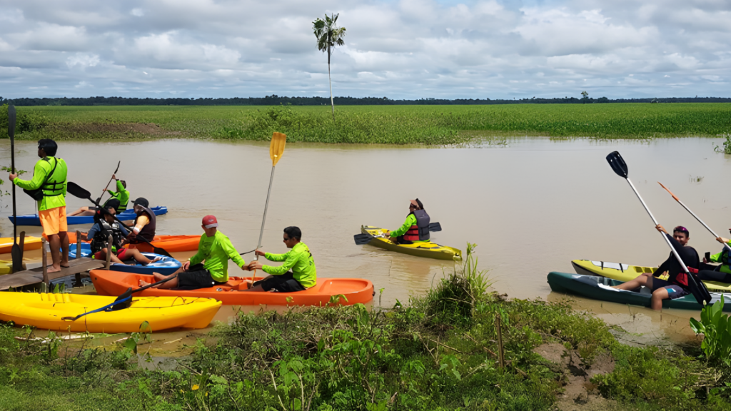 Isso implica em um conjunto de princípios: atividades de baixo impacto, monitoramento ambiental, circulação de renda no território e fortalecimento de vínculos entre visitantes e comunidades. Nos campos alagados, essa lógica se materializa na própria canoagem, uma prática que respeita os ciclos das águas, não exige grandes intervenções na paisagem e mantém a relação direta com o ambiente e seus costumes.
